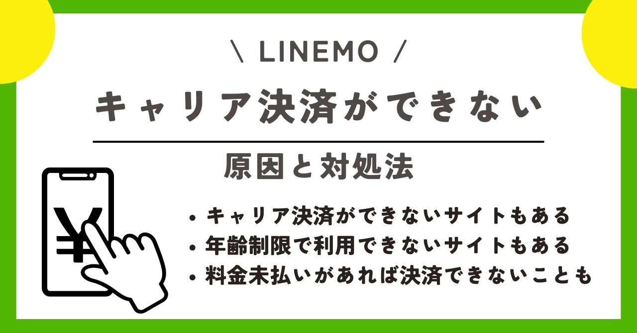 LINEMOのキャリア決済が利用できない原因と対処法を解説していきます。ソフトバンクまとめて支払いが利用できない原因は以下の通り。