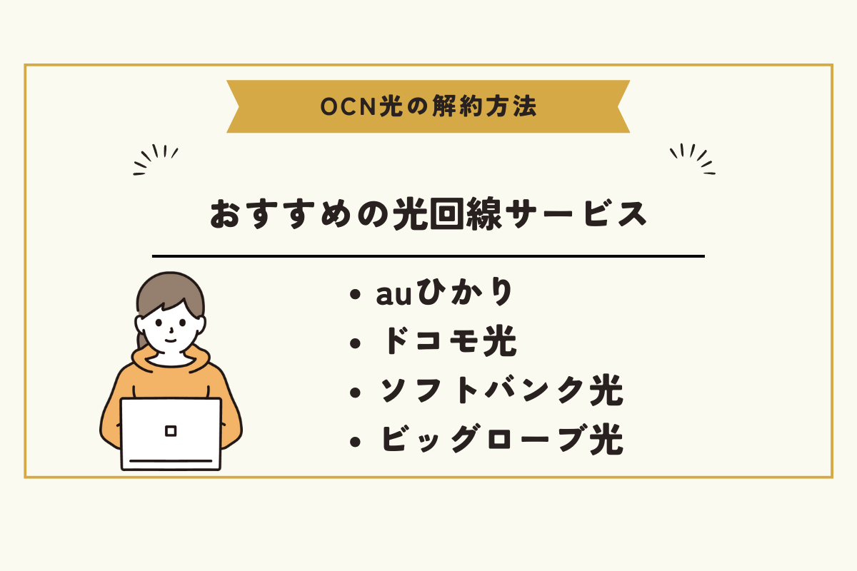 これからもインターネットを利用予定の方は、OCN光を解約する前に乗り換え先の光回線を検討することをおすすめします。