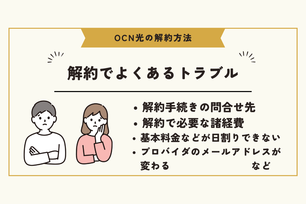 ここからはOCN光の解約でよくあるトラブルとその対処法について解説してきます。
