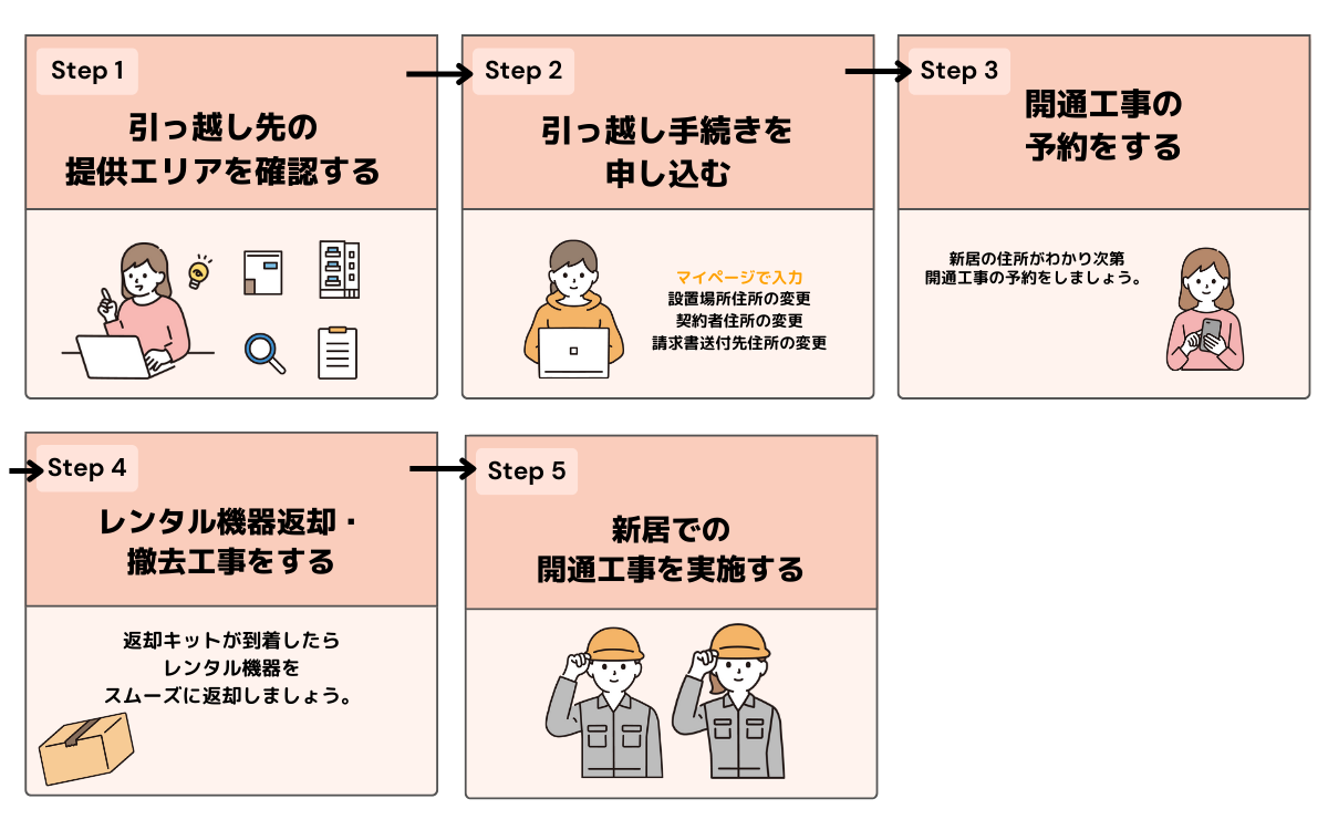 必要な方はここで回線廃止工事を実施します。工事がある方はこのタイミングで作業員にレンタル機器を渡すので、工事日までに返却するものをそろえておきましょう。