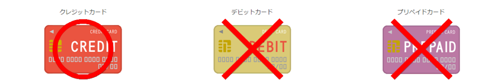 対応しているクレジットカードブランドは3種類と多くありません。とはいえいずれも日本では有名なブランドで作りやすいので、持っていない方は、申し込み前にクレジットカード作成をしましょう。