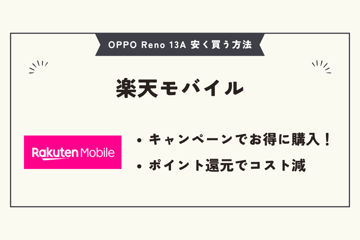 楽天モバイルでOPPO Reno 13Aを安く買う方法
