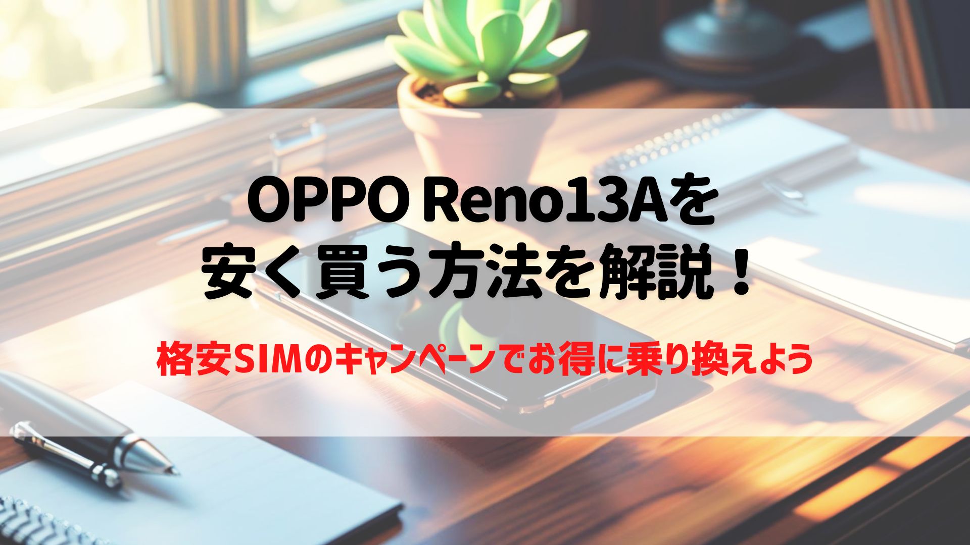 OPPO Reno 13Aはキャリアや格安SIMのキャンペーンを活用すれば、お得に購入可能です。この記事では、安く買う方法やお得なキャンペーンについて紹介しています。