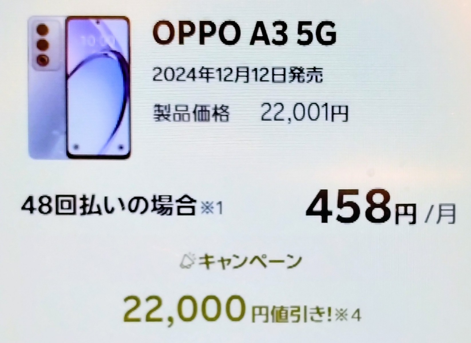 | 特典 | OPPO A3 5Gまたはarrows We2が1円 |