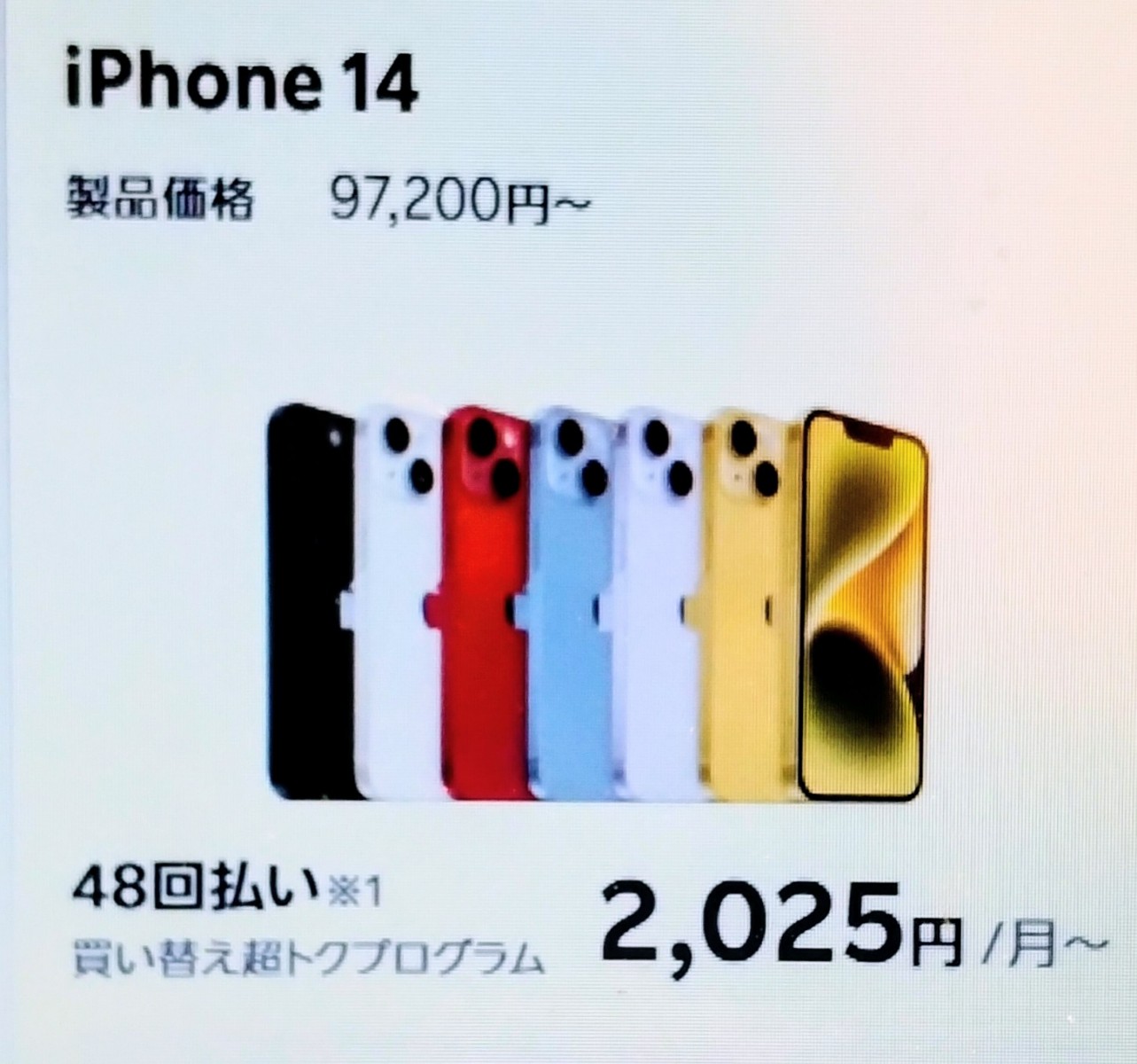 - iPhone14シリーズ|120,800円~(実質60,384円~)