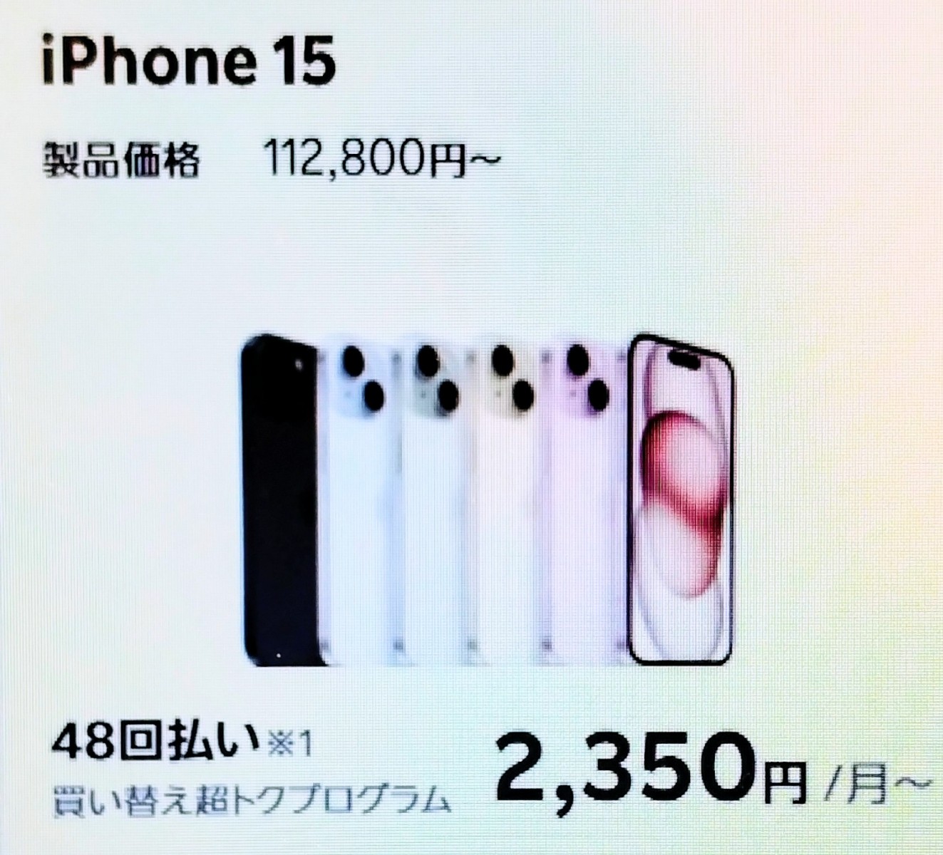 - iPhone15シリーズ|112,800円~(実質56,400円~)