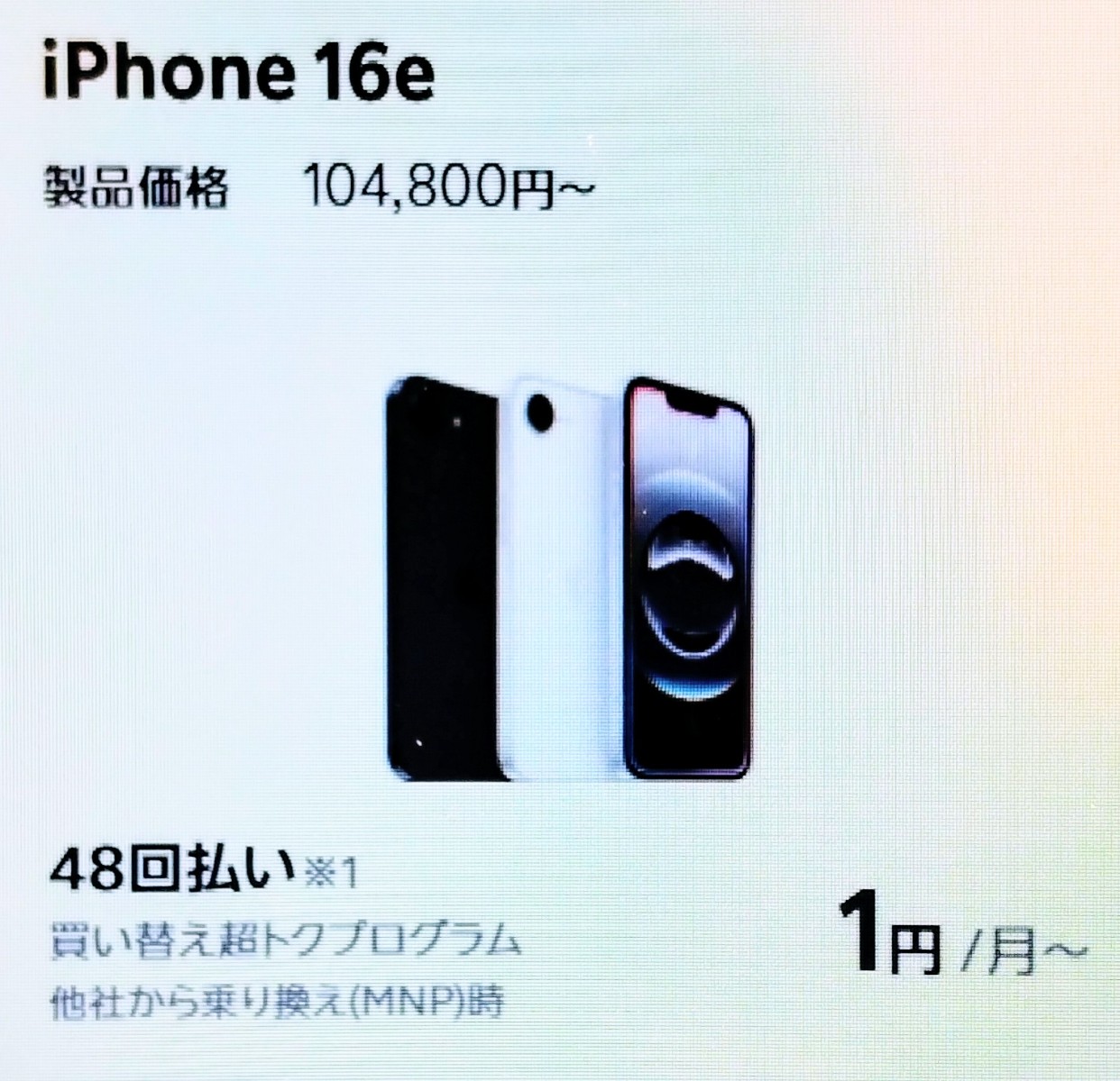 - iPhone16,iPhone16eシリーズ|104,800円~(実質24円~)
