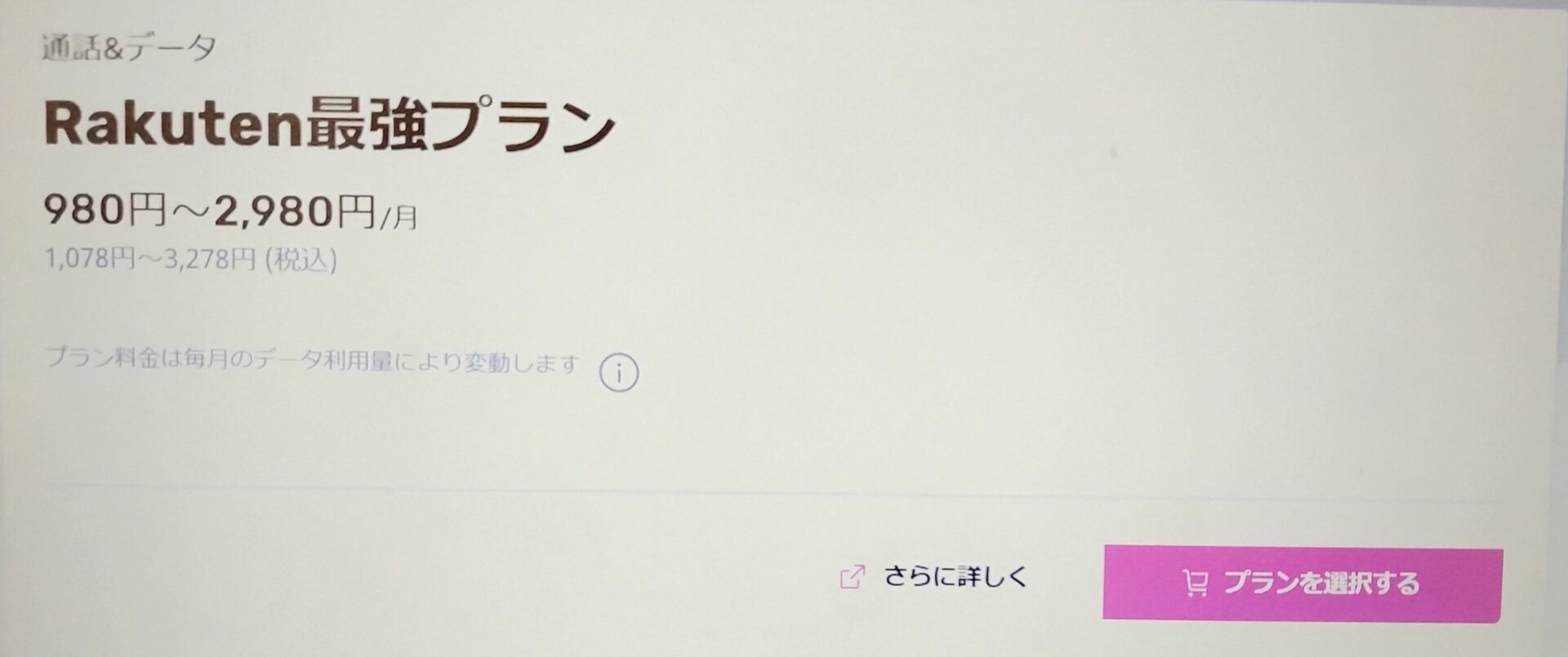- 3,278円で楽天回線エリアなら高速データ通信使い放題