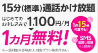| 15分通話かけ放題オプションが1ヵ月無料! |