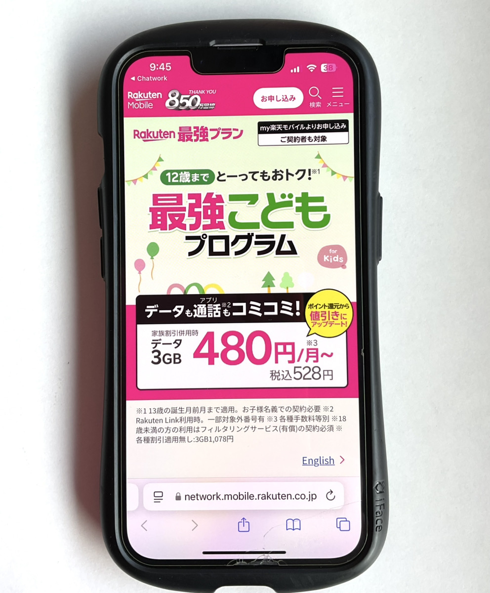 12歳以下の場合、学校や出先よりも自宅を中心に使用する方が多いかと思います。Wi-Fiと併用すれば、3GB以下で抑えられる可能性が高いでしょう。最強家族プログラムとの併用で月額528円でスマホを持たせられるのは、小学生のこどもにスマホデビューを考えている家庭にはうれしいサービスですね。