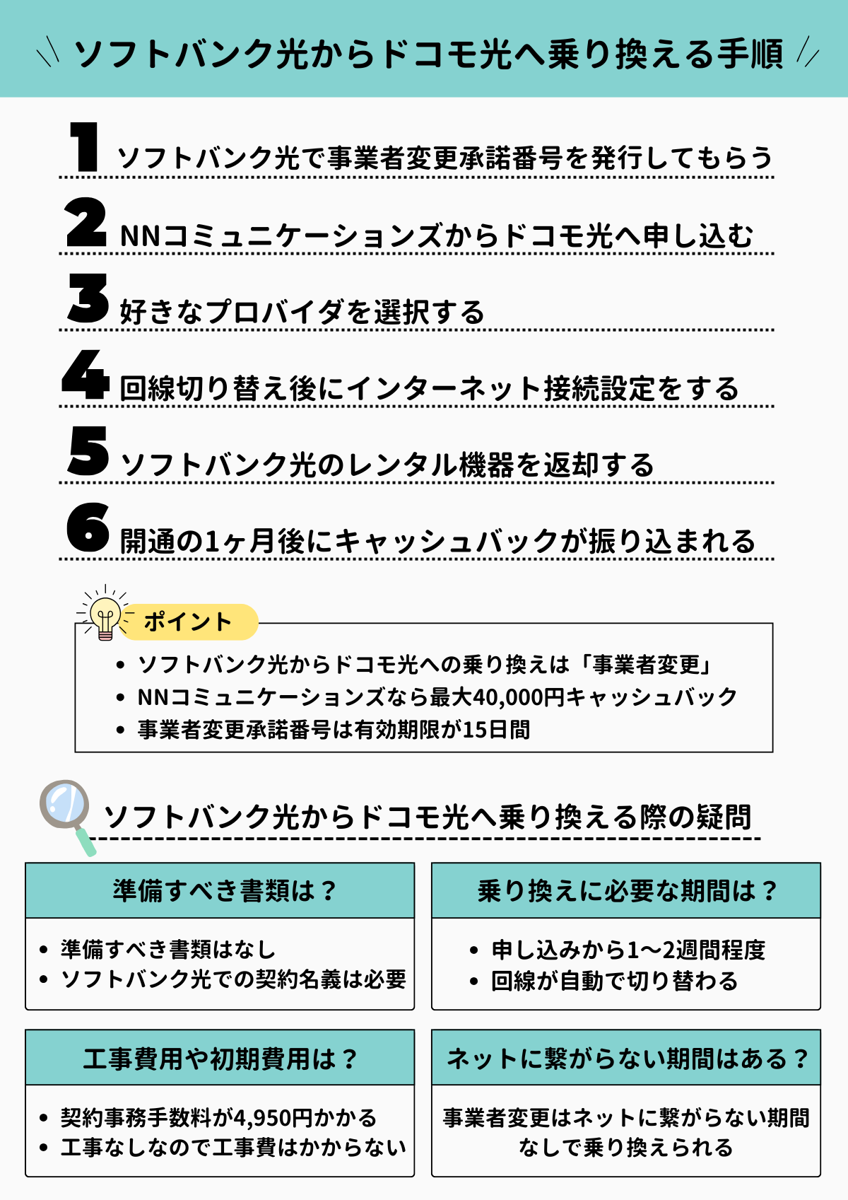 ソフトバンク光からドコモ光へ乗り換える際によくある質問集