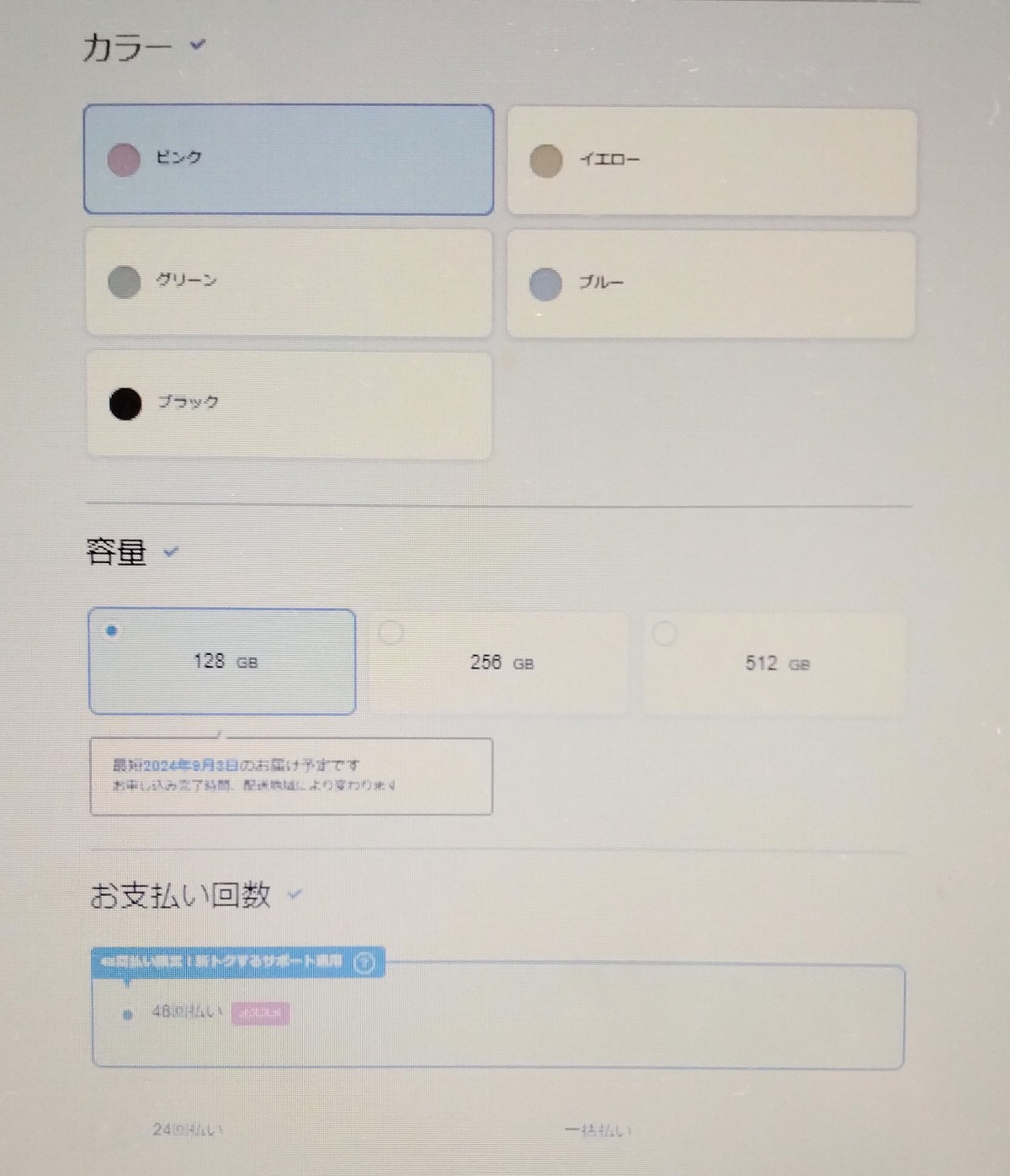 • 【注意】48回払いで購入すると対象外