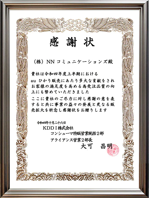 さらに、NNコミュニケーションズはauひかりから15期連続で表彰されています。