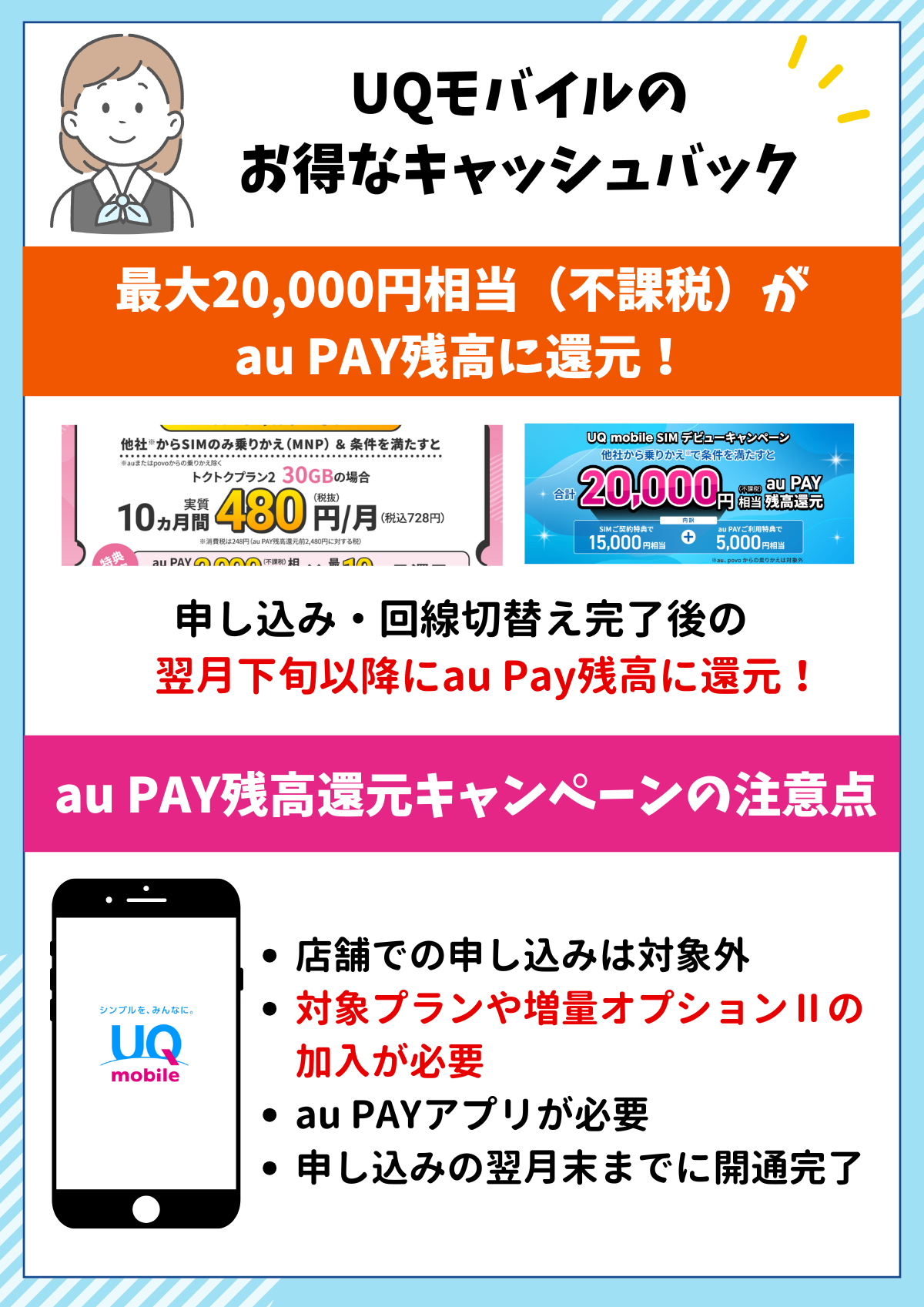 UQモバイルのキャッシュバック|au PAY残高還元キャンペーンの注意点