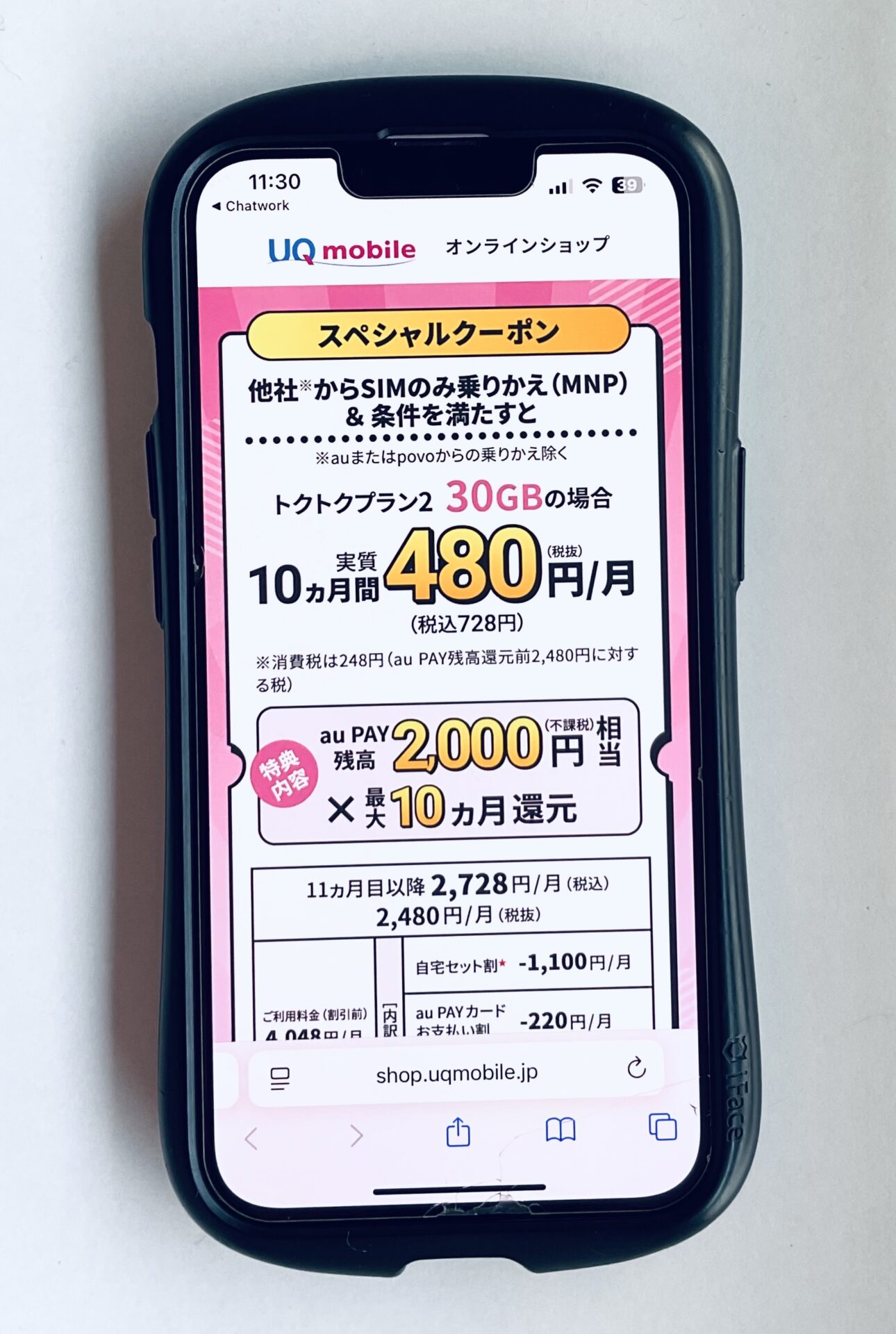 UQ mobile オンラインショップ限定 スペシャルクーポン