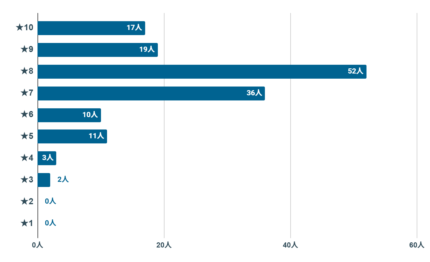 10段階評価で最も満足度が高い場合を★10とした時、なんと★7以上の評価を付けている方が全体で8割を超えていました。auの中古スマホは期待以上によかったと感じた方が多いようですね。