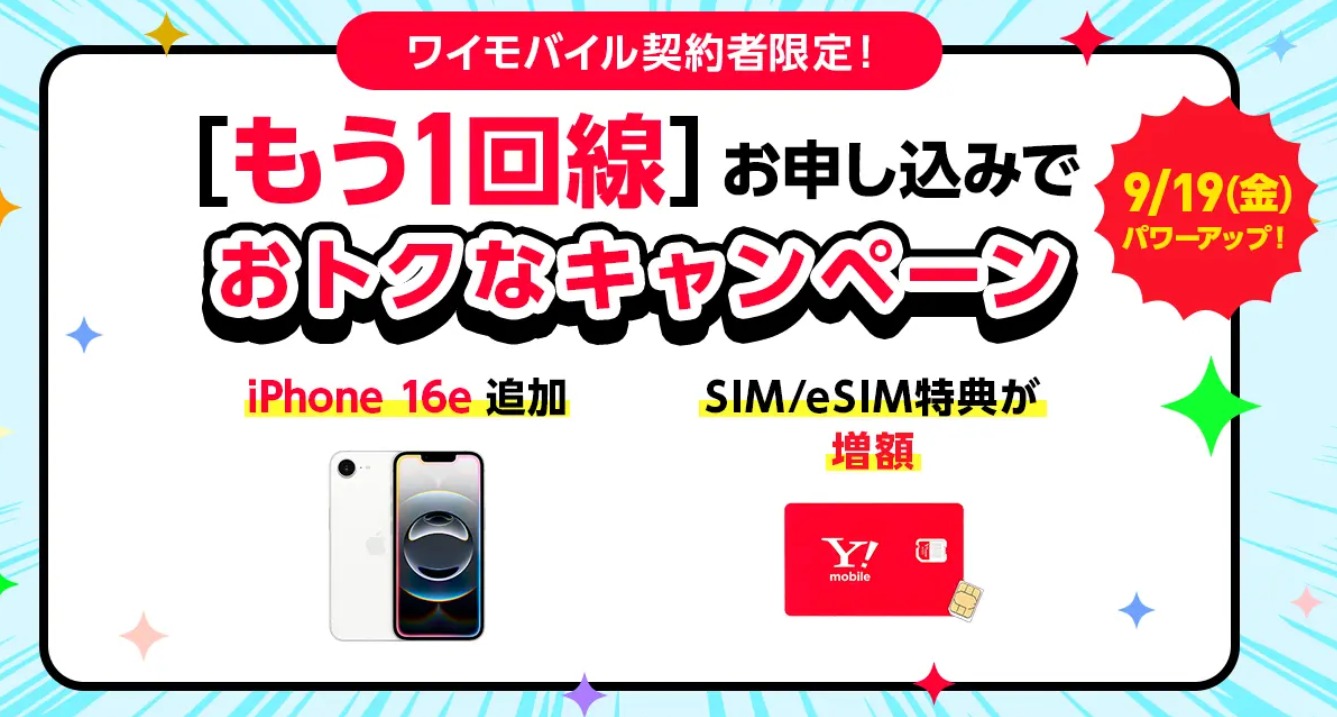 ![]() ワイモバイル契約者限定! | 2回線目以降は新規契約もお得!