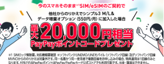 ![]() SIMカード/eSIMご契約特典 | 最大20,000円相当のPayPayポイント還元