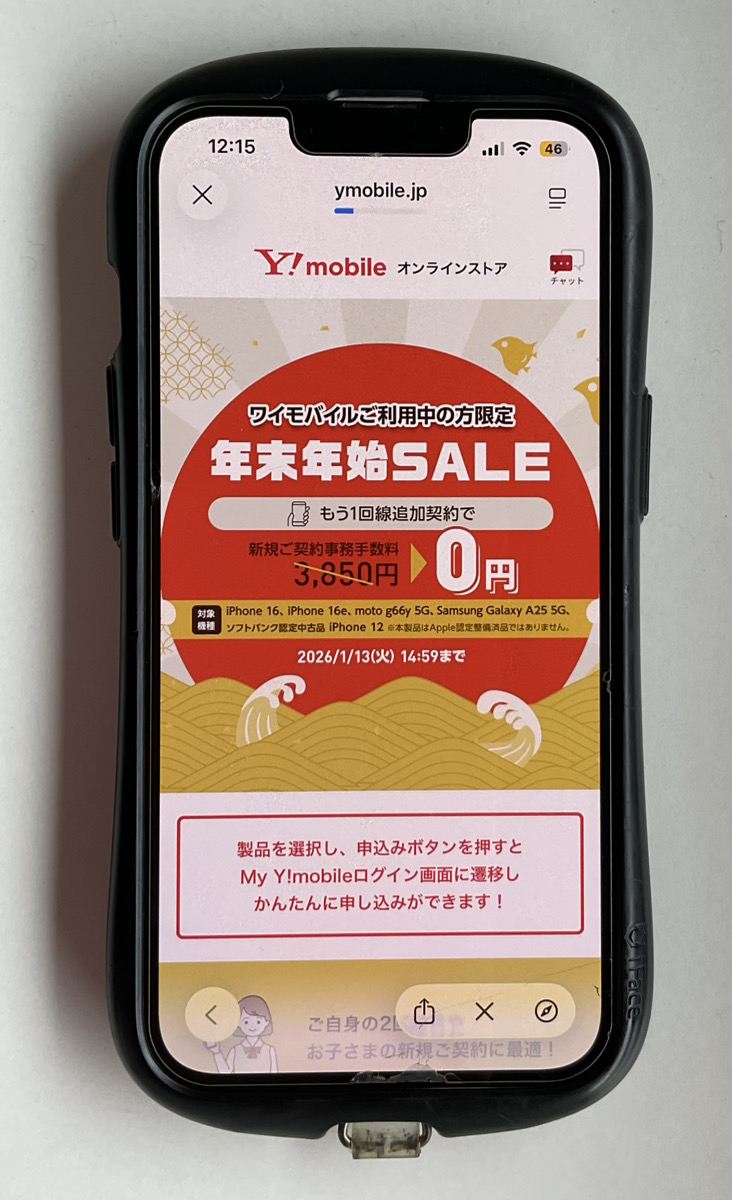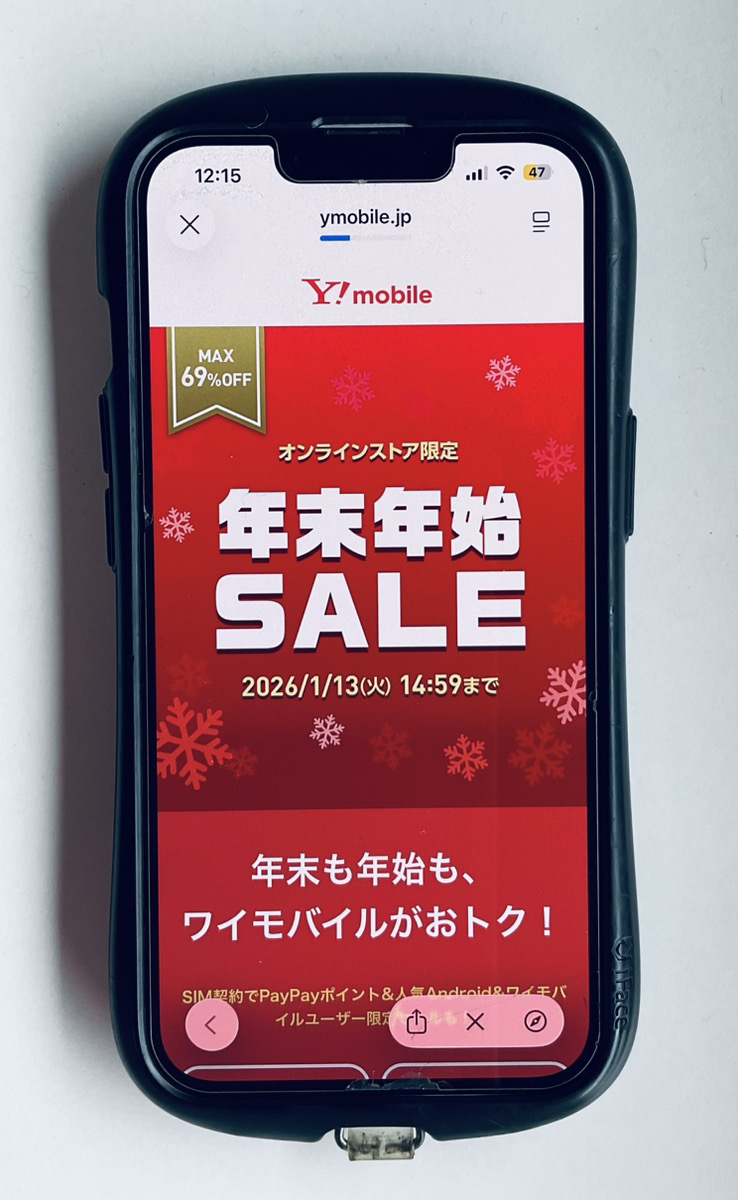 ワイモバイルでは、2026年1月13日(火)までオンラインストア限定で年末年始セールを開催しています!ワイモバイルへ機種変更・乗り換えるなら年末年始の今がチャンスですよ!