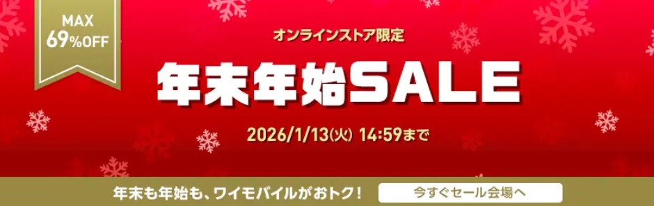 ワイモバイルでは、2026年1月13日(火)までオンラインストア限定で年末年始セールを開催中です!