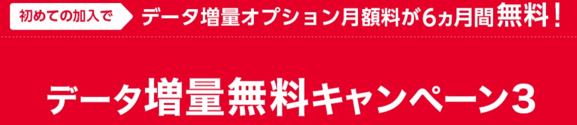 データ増量オプション月額料金(税込550円)が6ヶ月間無料