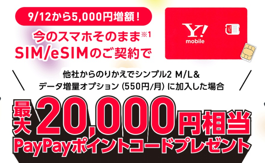 iPhone17シリーズおよびiPhone Airはワイモバイルで動作確認済であり、現在はeSIMのみ契約で最大20,000円相当のPayPayポイントがもらえるSIMカード/eSIMご契約でPayPayポイントプレゼントキャンペーンも実施中です。ぜひこの機会にワイモバイルでeSIMのみ契約を検討してみてください。