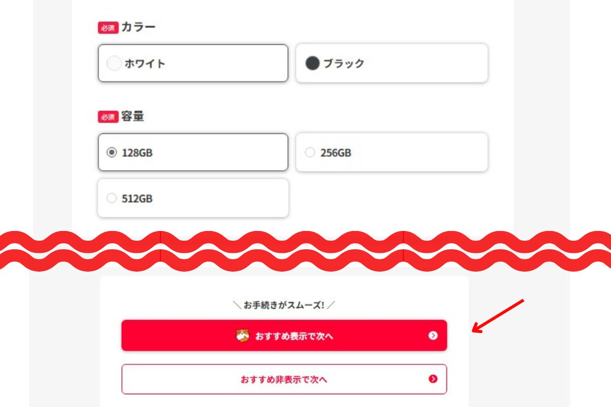 - カラー・容量・契約内容などを選択し「次へ」をタップ
