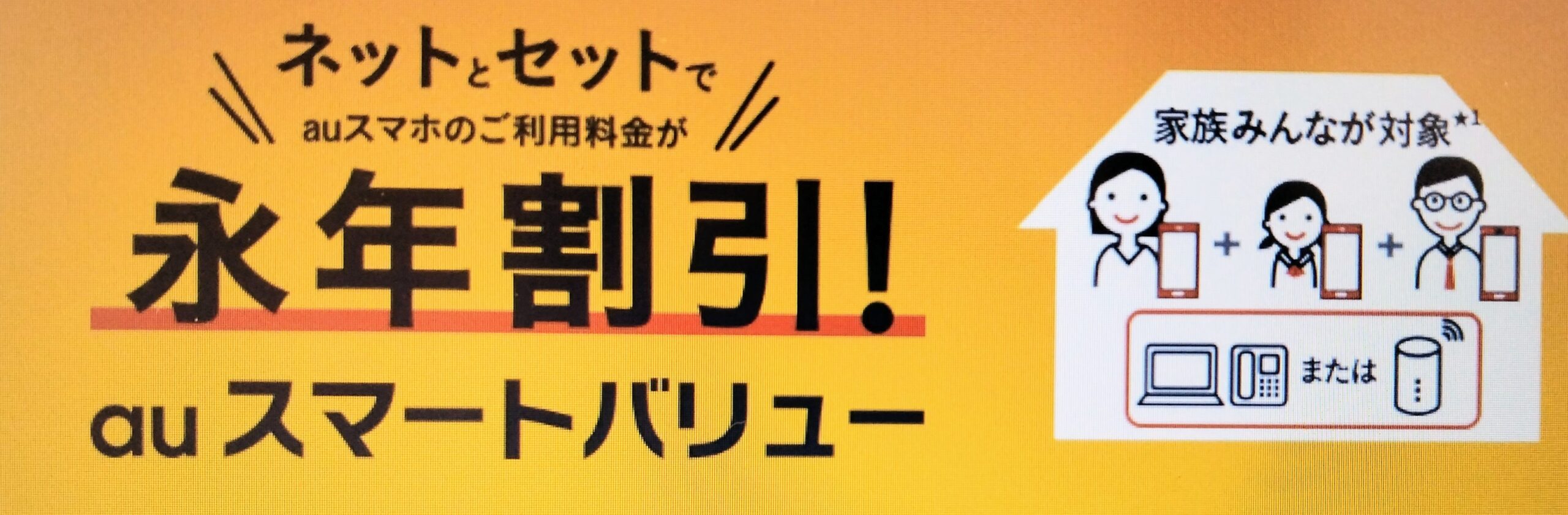 auスマートバリューは、auひかりなどの対象のインターネットサービス(ネット+電話)とauスマホの回線をセットで契約することでスマホの月額料金が毎月最大1,100円割引になるサービスです。まだ自宅にインターネットを引いていない方や、auスマホの月額料金を少しで安くしたいと考えている方には大変おすすめですよ。