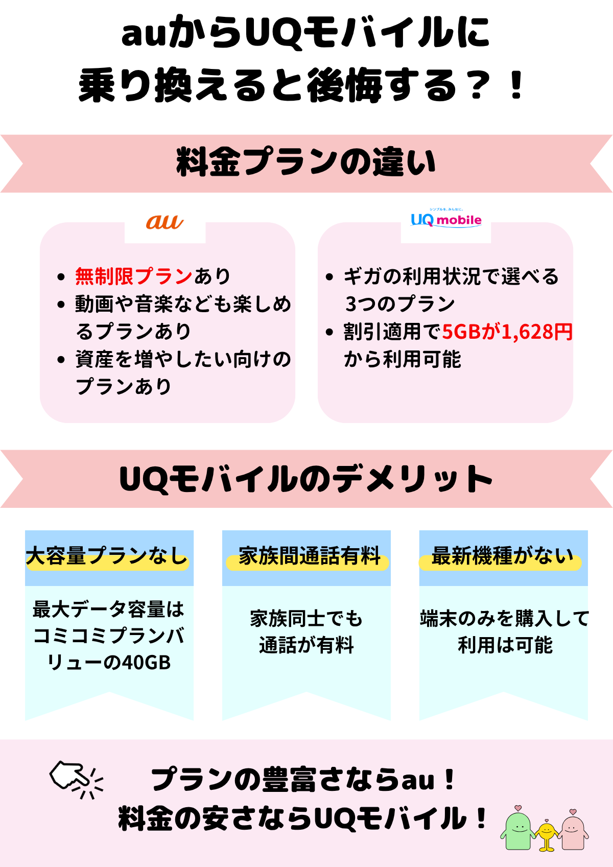 auからUQモバイルに乗り換え後悔する理由のデメリット・欠点 | 料金プランの違い・端末代