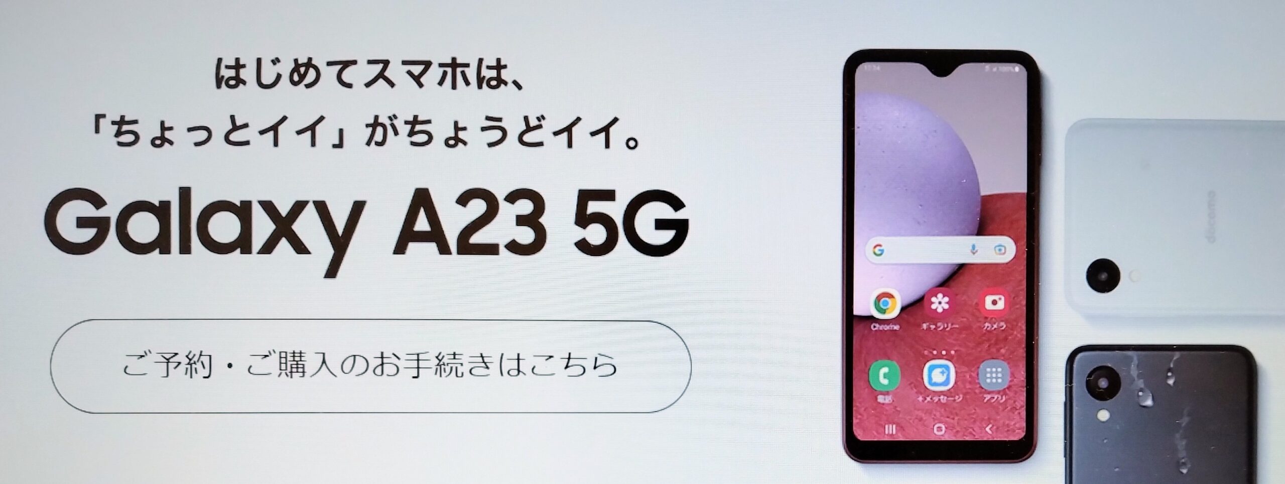 ドコモでは初めてのスマホにもおすすめの「かんたんモード」を搭載した「Galaxy A23 5G」を販売中です。通常本体価格は33,440円ですが、24回分割払いで端末の返却が条件の「いつでもカエドキプログラム」を利用することで24,464円~購入できますよ。