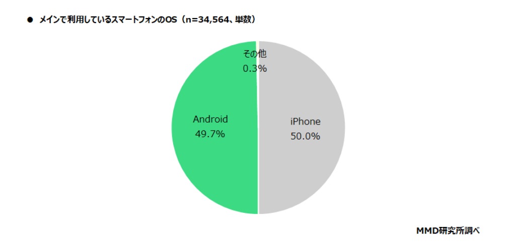 iPhoneとAndroidのシェア率はほぼ半々という結果です。