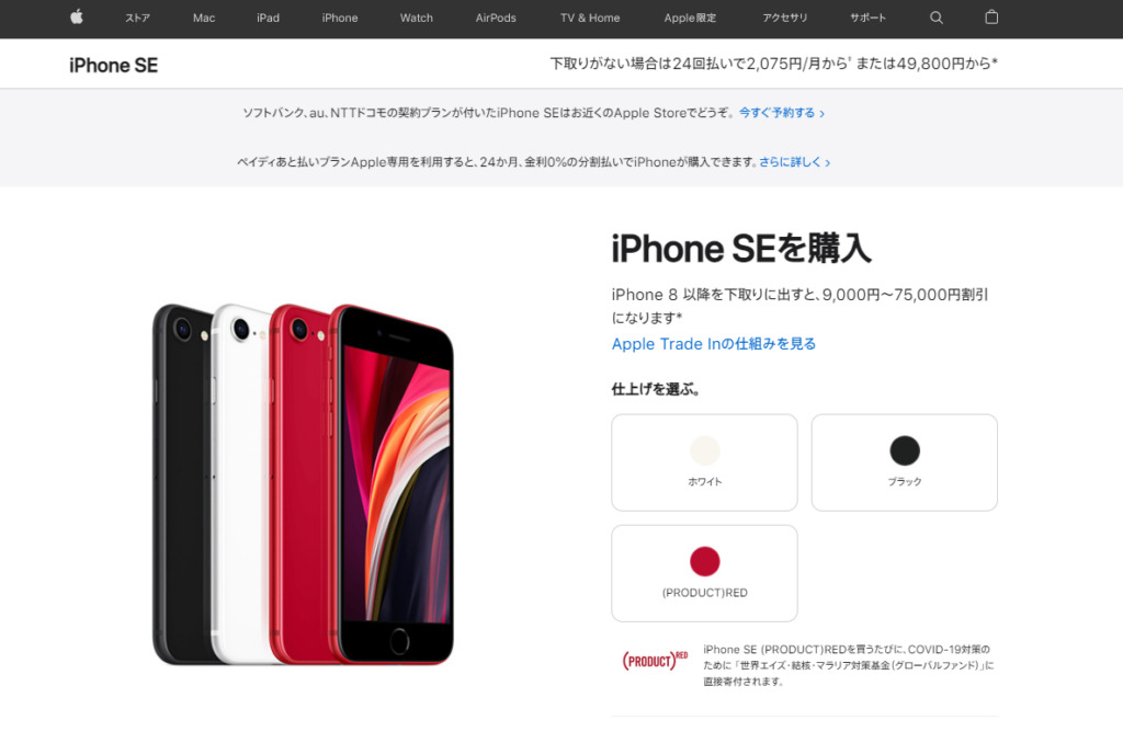 | iPhone SE (第2世代) | 2020年4月15日(水) | 2020年4月20日(月)10時 | 2020年4月24日(金) |