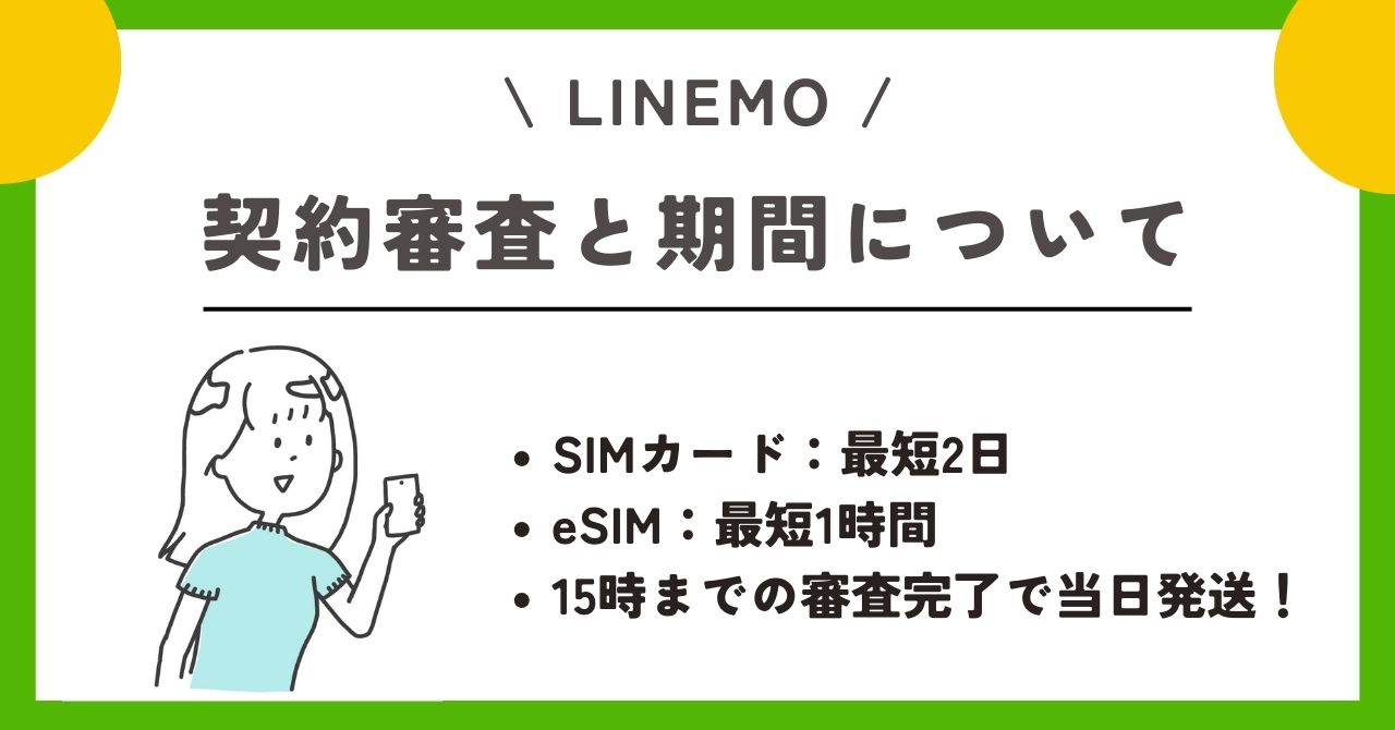 LINEMOの申し込みから利用開始までの期間は、SIMカードで最短2日、eSIMの場合は最短1時間で利用可能です。SIMカードは自宅まで配送されるため、eSIMよりも開通までに時間がかかります。どちらの契約であっても、LINEMOの審査に通った方から開通の案内があります。