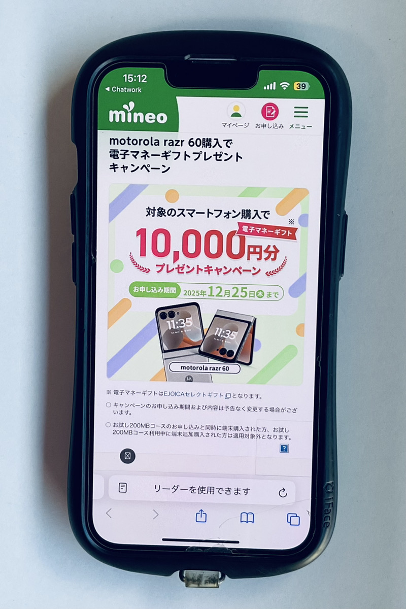 | motorola razr 60をmineoで購入 「EJOICAセレクトギフト」10,000円分 |