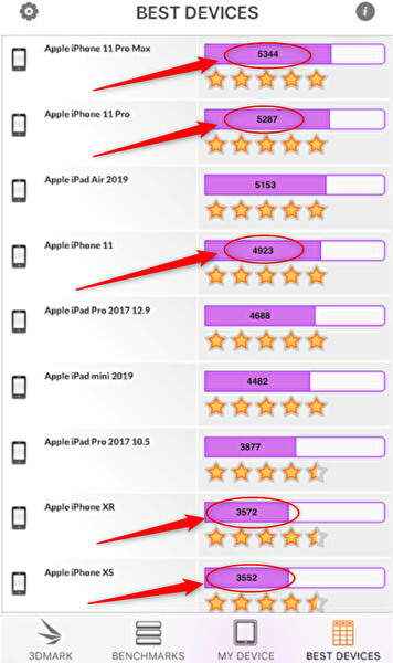 他モデルとスコアの数字を比較して見ると、iPhone 11シリーズと同等の性能を出しているのが分かります。ハイスペックモデルと変わらないパフォーマンスがあり、iPhone SE2の価格を考えると抜群にコスパがいいと言えますね。