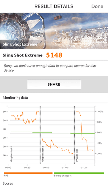 iPhone SE2には、CPUにA13チップを搭載していますので小型とはいえパフォーマンスは最上位レベルになっています。実際に3DMarkでCPU、処理能力を計測してみました。